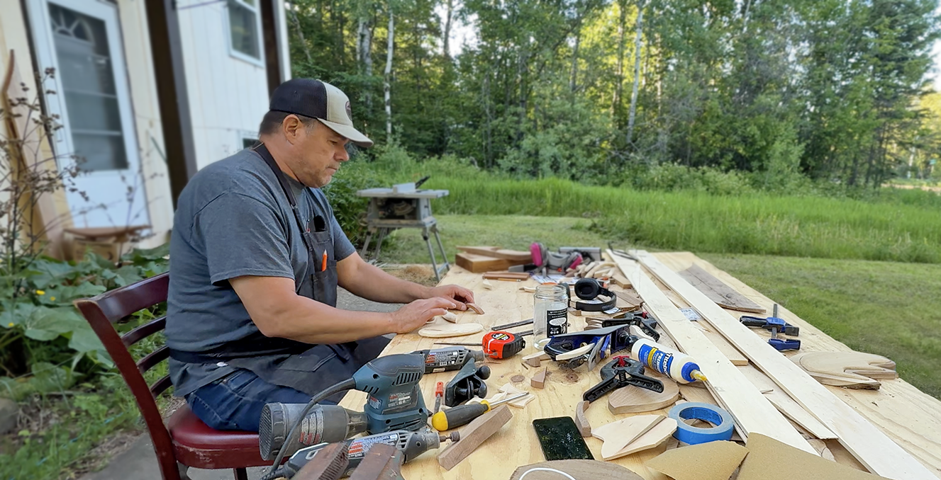On a warm summer afternoon in June, Grand Portage artist Donovan Dahmen is shaping more than just wood. His hands move with practiced precision, coaxing movement from timber as he works on his latest piece—a representation of biidaaban, an Ojibwe word describing the time just before dawn, when night and day are equally balanced.