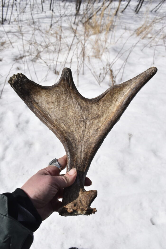 Moen said the duration of the process varies by animal and depends on how physiologically strong the antler connection was, how quickly testosterone levels decline, and more. Depending on the animal and various factors, moose and deer will shed their antlers between January and March.